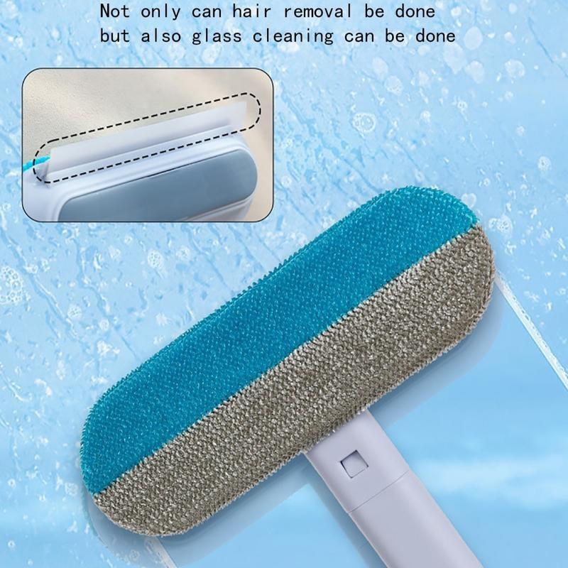 【4 in 1】Multi-functional Pet Hair Remover, Reusable & Washable Dog & Cat Hair Removal Tool with Extra Long Handle, Lint Cleaner Squeegee for Furniture, Carpet, Clothes, Bedding, Car, Window