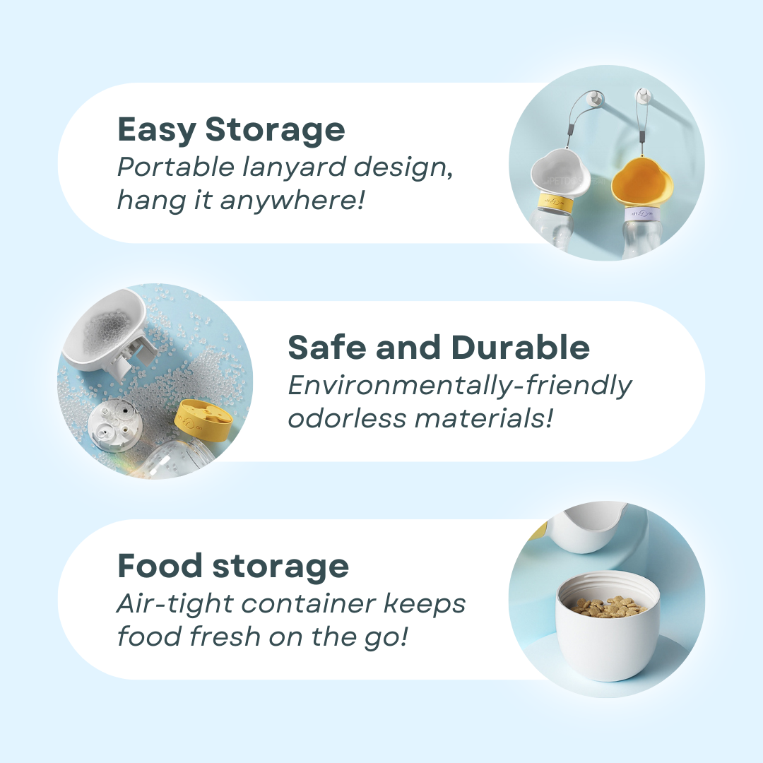 If you want to bring your pet with you on a trip out but always worry about them getting thirsty or hungry, then our 2-in-1 Pet Bottle with a bowl for food and water is perfect for you!