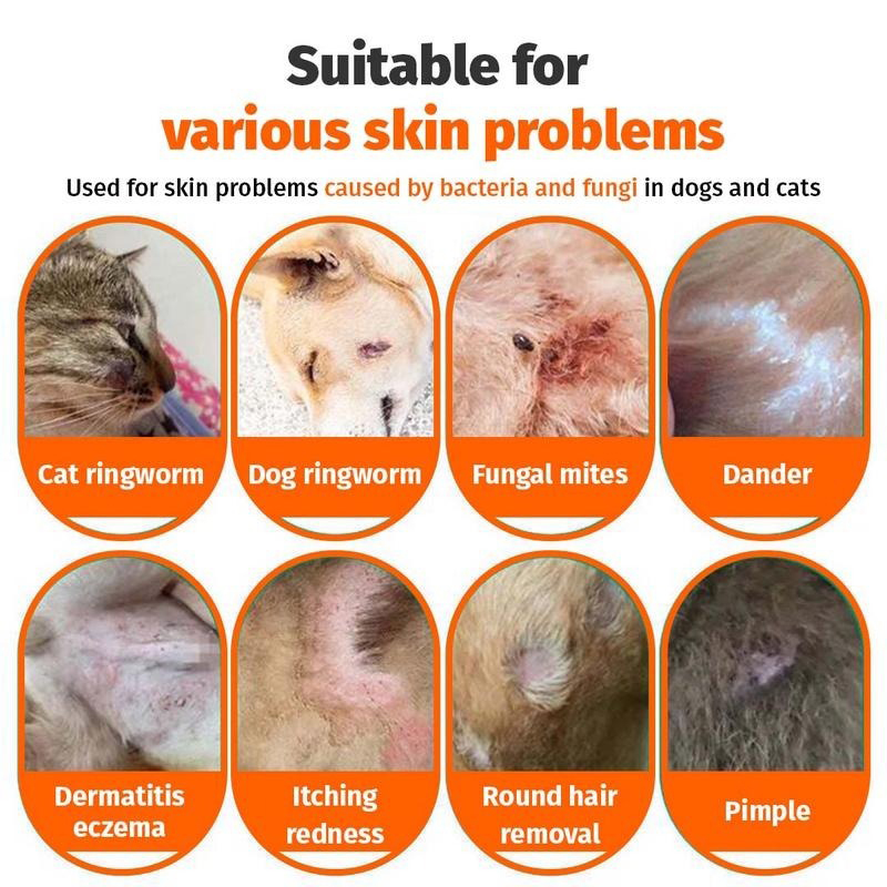 Perfect for both cats and dogs, this treatment is gentle yet highly effective, helping with various skin problems such as itching, dandruff, pimples, and eczema. It’s safe for all types of pets and helps prevent cross-infection between animals.