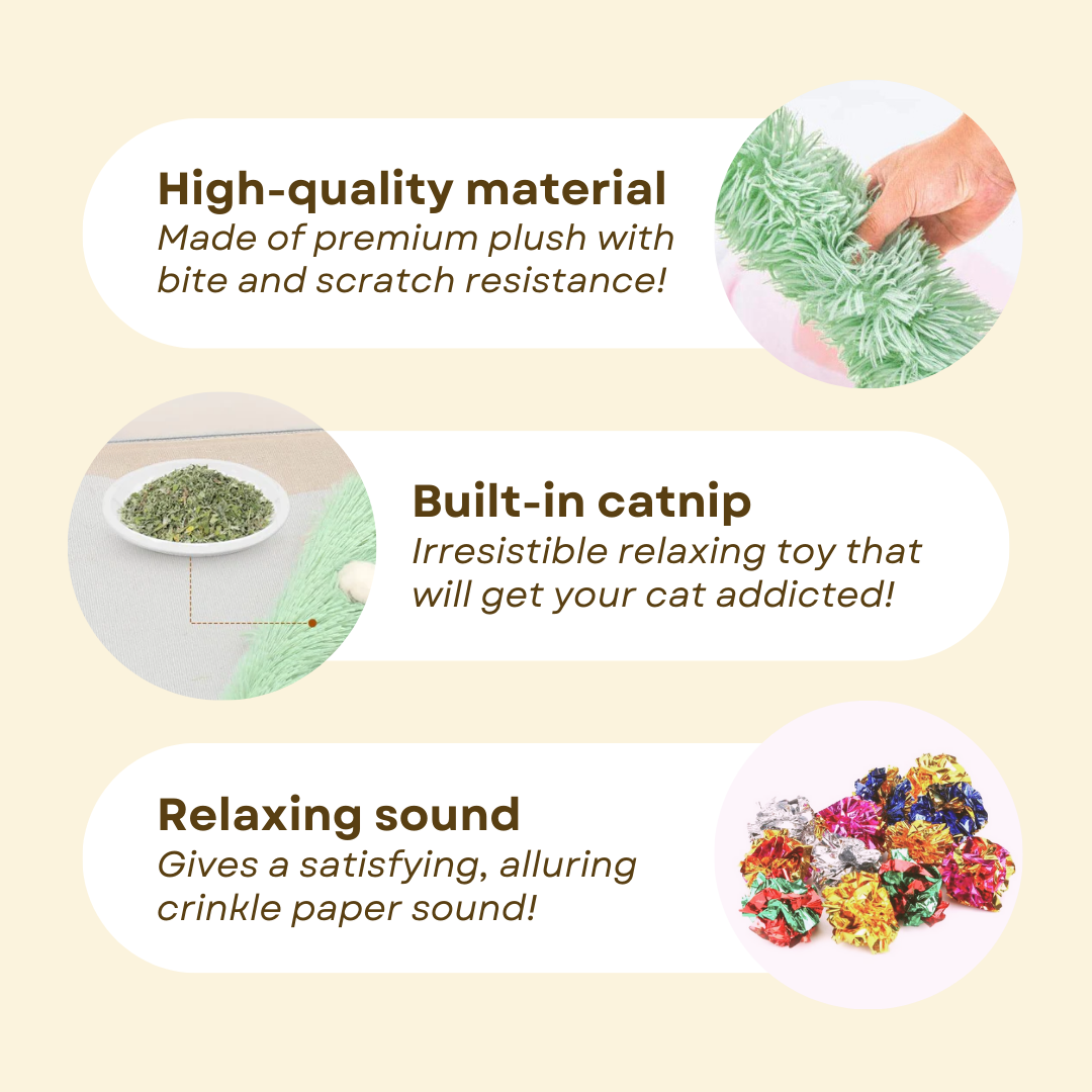 Give your cat something both fun and fluffy with our Tail Pillow Toy! Made with a bite-resistant material, filled with catnip, and giving a satisfying, alluring crinkle paper sound while also being really comfy to hug, this pillow toy is exactly what they need!