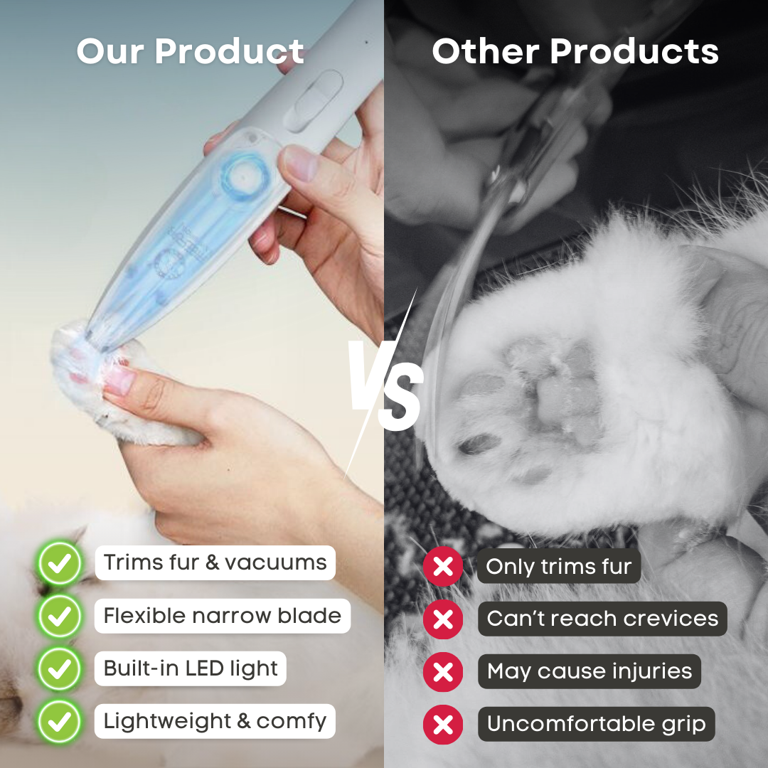 Grooming your cat is great and all, but sometimes there's way too much fur to clean up after! Our Vacuum Hair Trimmer doesn't just get rid of all that fur, but it also functions as a clipper for your cat!